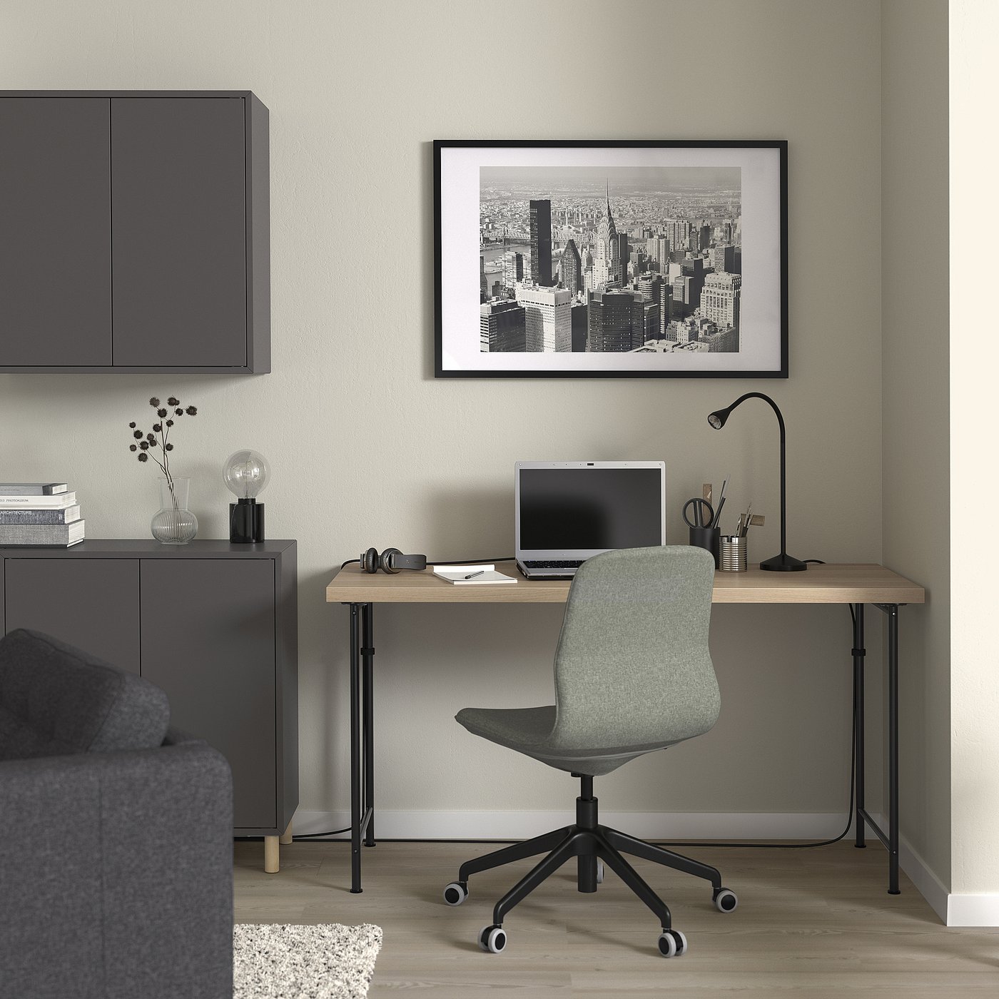 Oakvon combines natural warmth with industrial edge, featuring a 140×60 cm white stained oak effect top supported by sleek black legs. This modern desk fits both home and office environments, offering a stylish surface for work, design, or remote meetings.